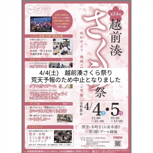 - - 2026年4月4日 【中止】越前湊さくら祭 【中止】